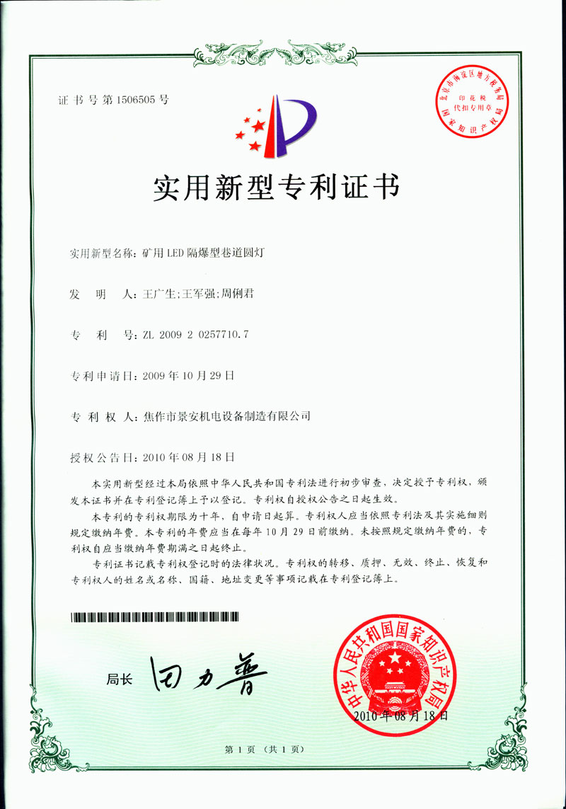 焦作景安公司始終堅(jiān)持“以科技為先導(dǎo),以市場為導(dǎo)向”的發(fā)展戰(zhàn)略,不斷進(jìn)行新產(chǎn)品的研制和開發(fā),在國家“六五”到“九五”期間,承擔(dān)和參與了國家多項(xiàng)科技攻關(guān)項(xiàng)目,產(chǎn)品的技術(shù)和質(zhì)量一直處于全國同行業(yè)領(lǐng)先位置。并被中國電器工業(yè)協(xié)會(huì)評(píng)定為“質(zhì)量可信產(chǎn)品”。特別是在礦用防爆燈領(lǐng)域,礦用隔爆型半導(dǎo)體(LED)照明燈具,2008年列入國家火炬計(jì)劃,獲2009年河南省工業(yè)和信息化廳的科技成果二等獎(jiǎng),并擁有多項(xiàng)國家專利。 |